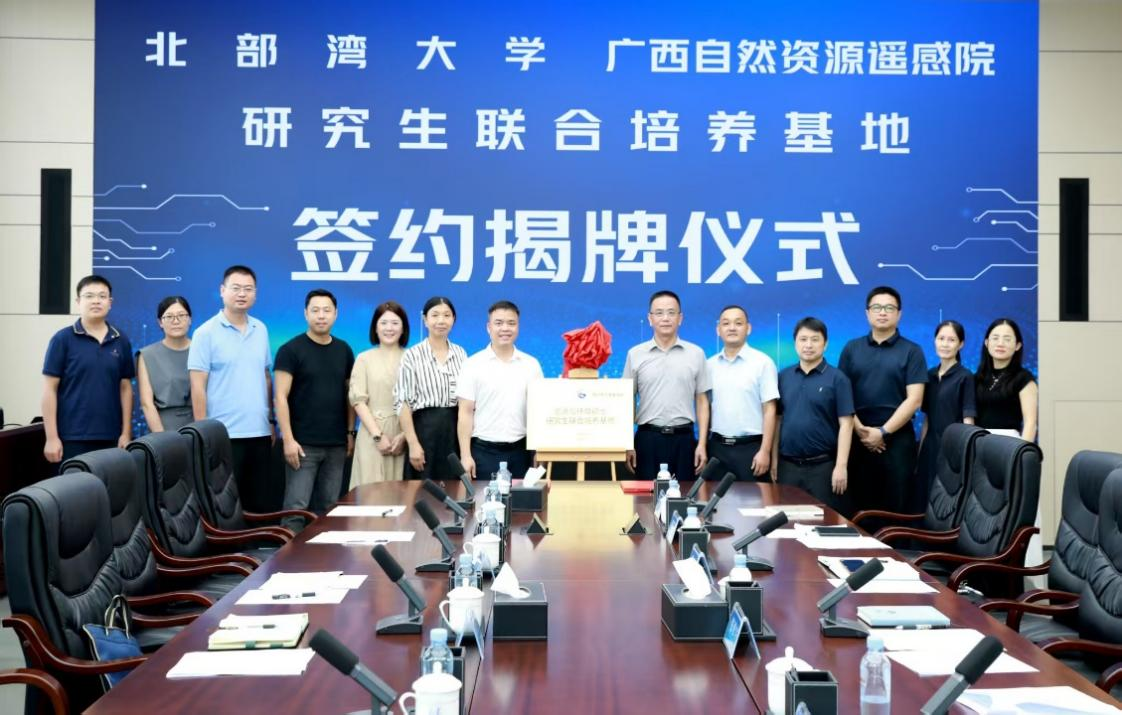 10日上午,北部湾大学与广西自然资源遥感院研究生联合培养基地协议签约揭牌仪式在中国—东盟卫星遥感应用中心举行。院长黎树式,广西自然资源遥感院党委书记、院长张祖宇代表双方签订研究生联合培养基地协议并揭牌。仪式结束后,双方就研究生联合培养、实践教学安排、开发特色课程、科研项目合作和成果转化等方面进行深入座谈交流并达成初步共识。