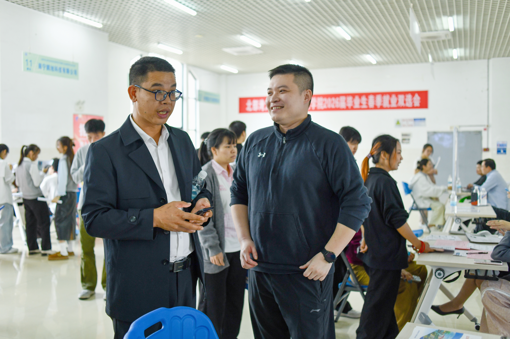 学院党委书记粟建勇向企业询问招聘岗位需求