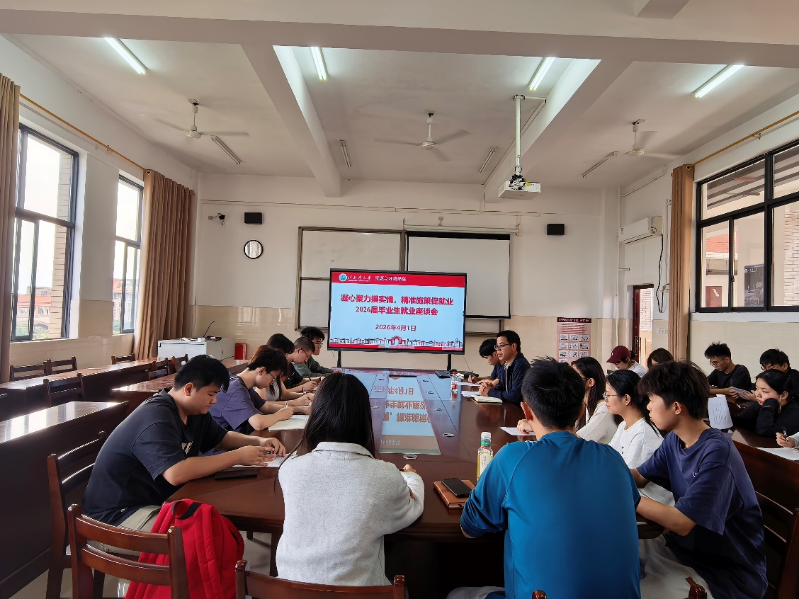 为精准掌握2026届毕业生就业动态,扎实推进毕业生就业工作,4月1日,学院在13-405会议室召开毕业生就业调研座谈会。会议由学院党委书记粟建勇主持,各毕业班主要班干部参会。