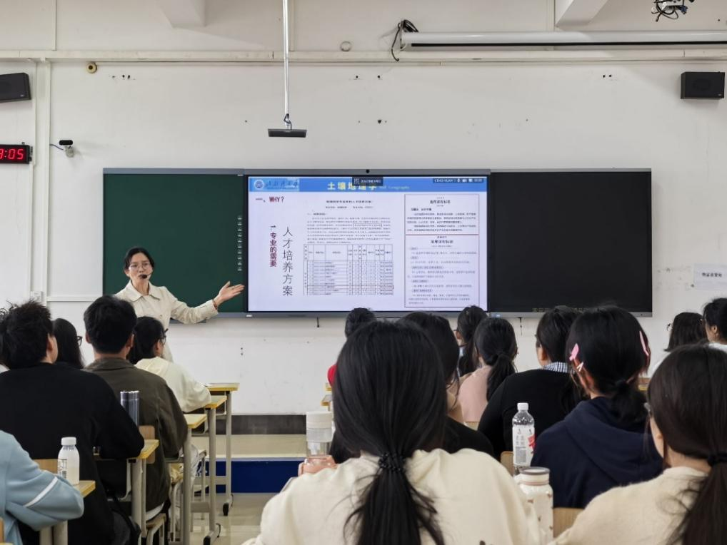 我院青年教师莫小荣博士主讲《土壤地理学》课程。课上,莫老师通过多媒体辅助、案例分析、现场演示,将专业知识与AI科技、家国情怀深度融合,开启了土壤地理学的课程之旅。郑处长对开学第一课给予高度赞扬,点评到“莫小荣老师的课程逻辑清晰,教学内容层层深入,学生互动性强,积极将AI技术融入课堂教学,是人工智能赋能教学改革创新的有益探索。”