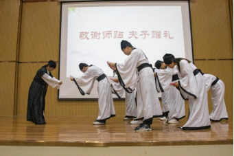 毕业典礼别出心裁,以传承中华优秀传统文化为主要理念,设计了十个主要环节,分别是:正衣冠、敬拜先师、准予出府、敬谢师贴、夫子赠礼、感恩服务、弟子感言、后学祝福、西席寄语以及山长训诫,其中穿插情景剧、歌舞表演等节目。