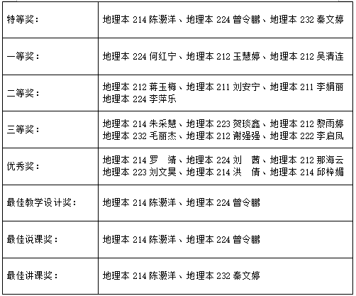 比赛面向资源与环境学院全体同学,初赛每个选手5分钟的讲课展示,决赛的10名选手采用与区赛一致的比赛规则,包括教学设计、说课、模拟上课等三个环节,要求参赛选手现场根据抽取到的教学内容设计课程课件,利用150分钟完成课件的制作,5分钟内完成说课,最后在10分钟内根据教学设计选取核心内容完成模拟上课。最终评选选出特等奖3名,一等奖3名,二等奖4名,三等奖6名及优秀奖6名,本次决赛还评选出最佳教学设计奖、说课奖及模拟讲课三个单项奖。