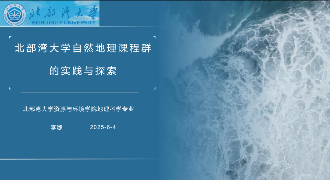 2025年6月4日晚,教育部地理科学专业虚拟教研室自然地理课程群第三期教研活动以线上形式举行。活动由南宁师范大学张胜前教授主持。学院李娜老师作为主讲嘉宾之一,做了《北部湾大学自然地理课程群的实践与探索》的专题报告。