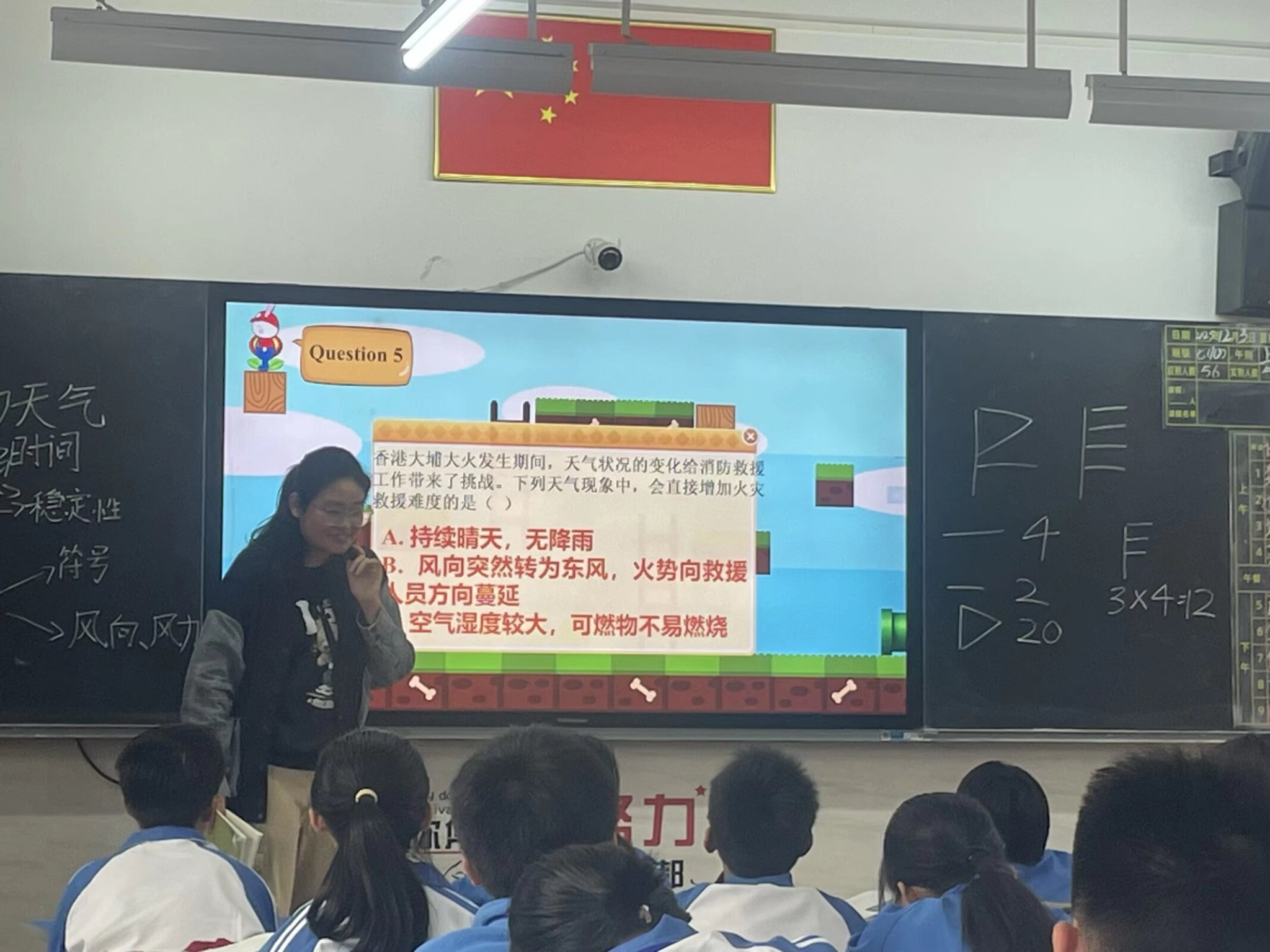 活动中,指导教师彭振凤以流畅课堂呈现多样的师生互动教学,借助平板智慧授课,实时查看学生作答与知识掌握情况,高效落实教学目标。实习生秦喆创新引入《疯狂动物城 2》素材串联整个课程情境并开展游戏互动练习,激发学生兴趣,展现教学活力。