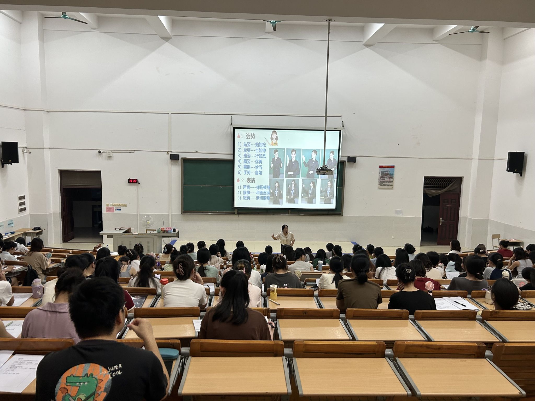 为了加强师范生对教师礼仪的认识和理解,提升师范生的职业素养,6月4日晚,我院在11-208教室开展了“礼润和雅,仪满校园”教师礼仪专题讲座,主讲人为钦州市第一中学骨干教师何坚娟老师。本次讲座由杨利琼老师主持,地理科学专业2021级全体学生和其他感兴趣的师生参加讲座。