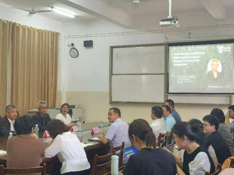 黎树式院长首先对伊斯梅尔教授(Prof. Ismail)一行的到来表示热烈的欢迎,并介绍了学院的基本情况。伊斯梅尔教授首先介绍了UMP学校与学院的学科建设及学术环境,随后重点介绍了马来西亚的森林资源以及林业地理信息系统研究中的关键问题。同行的扎克(Prof. Zaki)教授也以马来西亚红树林的物种多样性及红树林资源的开发利为主题做了报告。报告结束后,伊斯梅尔教授(Prof. Ismail)与参会的老师们进行了热烈的交流,就两地红树林物种差异、红树林资源保护及合理利用等问题进行深入探讨,双方均表达了今后进一步交流合作的意愿。