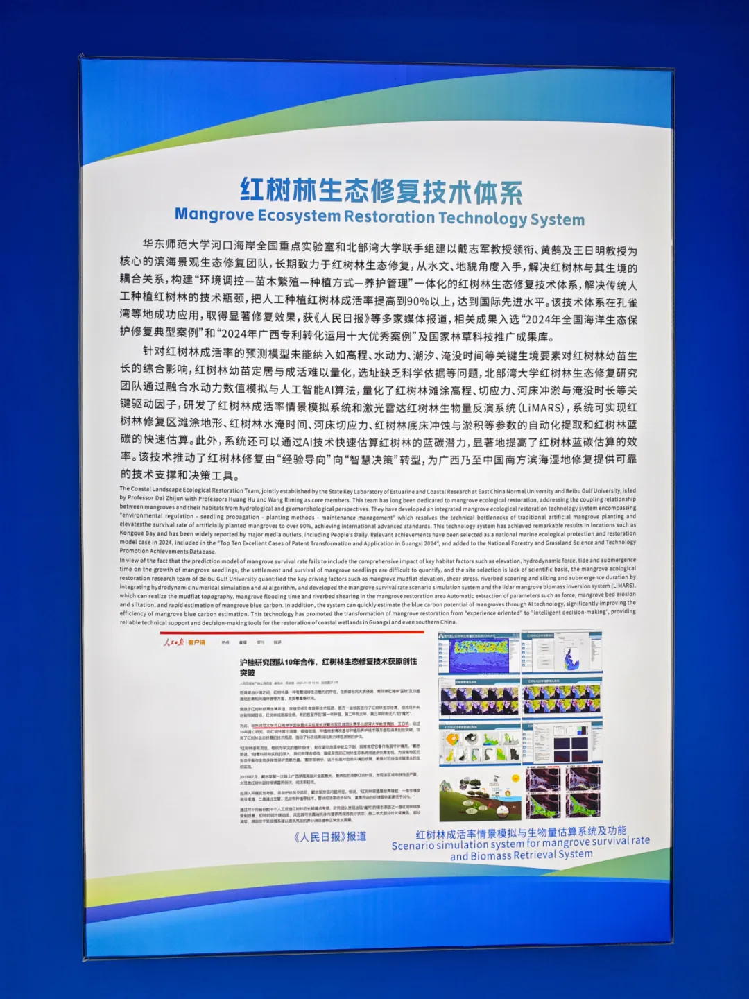 2025年9月17—21日,第22届中国-东盟博览会在南宁举行,北部湾大学以“AI赋能海洋、创新链接东盟、智力支撑合作、共促临港发展”为主题亮相东博会展位,海味十足,科技感满满,尽显学校“海洋性、应用型、国际化”的办学特色。红树林生态修复研究院院长黎树式,以及骨干成员王日明博士、田义超博士参加了该活动。研究院展示的红树林生态修复技术体系和激光雷达红树林生物量反演系统等内容得到观展领导和嘉宾们的高度认可。这是研究院成立以来首次参加中国-东盟博览会,研究院将进一步落实习近平生态文明思想和践行绿色发展理念,不断加强AI等新技术新手段赋能红树林生态修复工作,强化与企业合作,将生态修复技术体系进一步推广和转化,为学校高质量发展做贡献。(图片来源:党委宣传部)