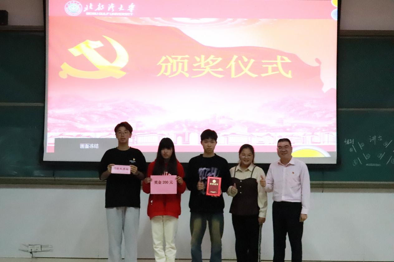 此次竞赛采取线下分组抢答的形式进行,参赛队伍由三个学生党支部及党员服务中心各派出两组队伍组成。竞赛设置了涵盖党章、党规、党纪、党史以及习近平新时代中国特色社会主义思想等内容的题目,尤其注重对党的二十届三中全会、习近平总书记在全国教育大会上的重要讲话精神、习近平总书记在广西考察期间的重要讲话精神以及北部湾大学发布的《关于进一步全面深化人才培养体制机制改革推动学校高质量发展的意见》内容的考察。竞赛环节分为必答题环节、抢答题环节、风险题环节以及趣味现场互动。现场竞赛气氛热烈且紧张,各参赛队伍准备充分,在必答题环节中沉着应对,比分紧咬;抢答题环节则高潮迭起,各队选手眼疾手快,竞争激烈;风险题环节更是考验了参赛队伍的策略与勇气。现场观众也积极参与互动。