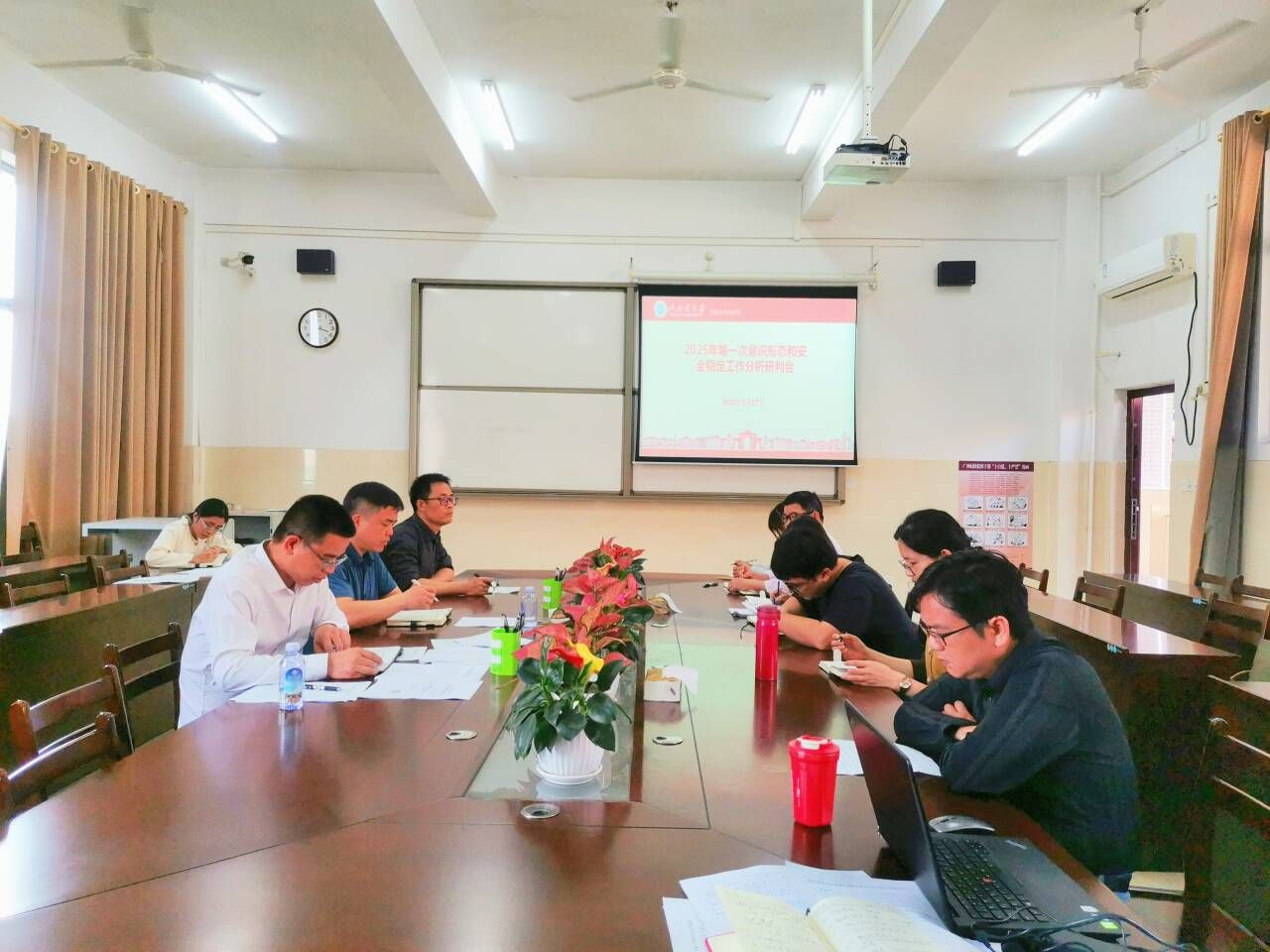 学院于3月27日下午在13-405会议室召开2025年第一次意识形态和安全稳定工作分析研判会,学院党委委员以及各党支部书记、党政办、教务办、学工办、实验中心负责人参加。会议由我院党委书记粟建勇同志主持。