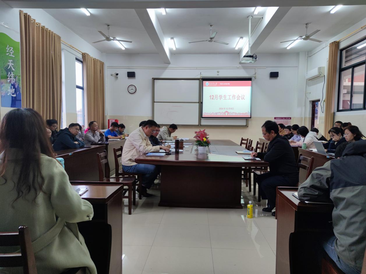 12月10日下午3时,我院在13-405召开了12月份学生工作例会,学院全体教师出席会议。