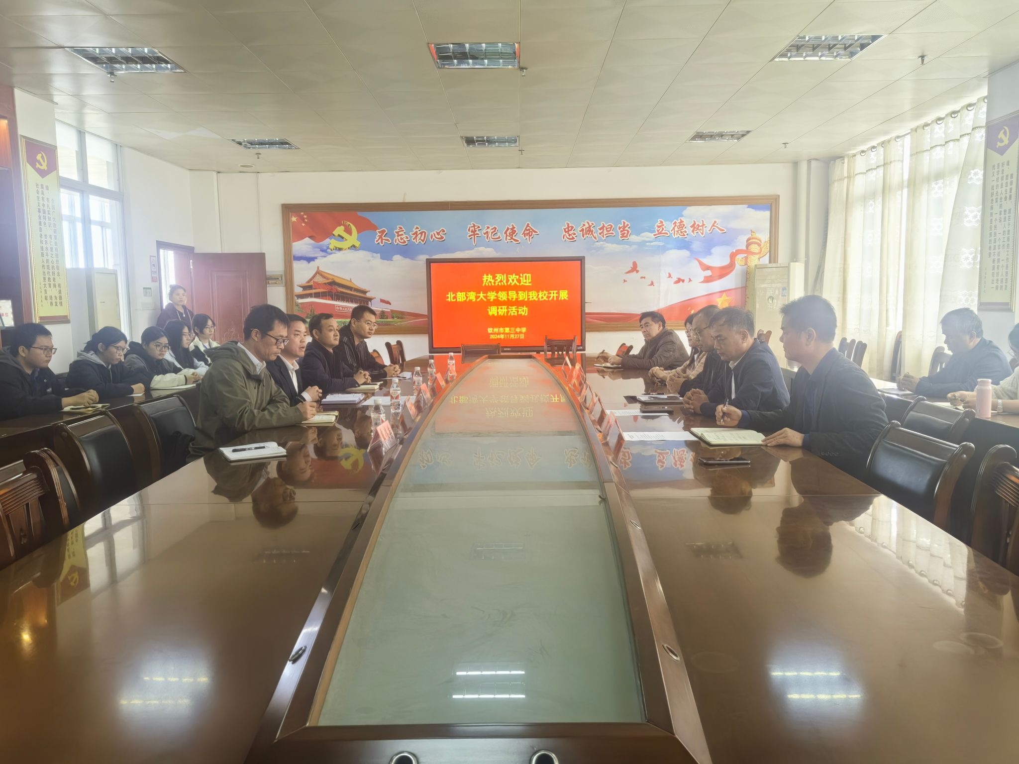 为进一步加强教学实习基地建设,了解中学教师队伍的人才需求,推动高校与地方基础教育的深度合作,2024年11月27日下午,我院院长黎树式率队赴钦州市第三中学开展访企拓岗活动。钦州市第三中学党委书记伍峰、校长周运雄及相关领导热情接待了调研组一行。