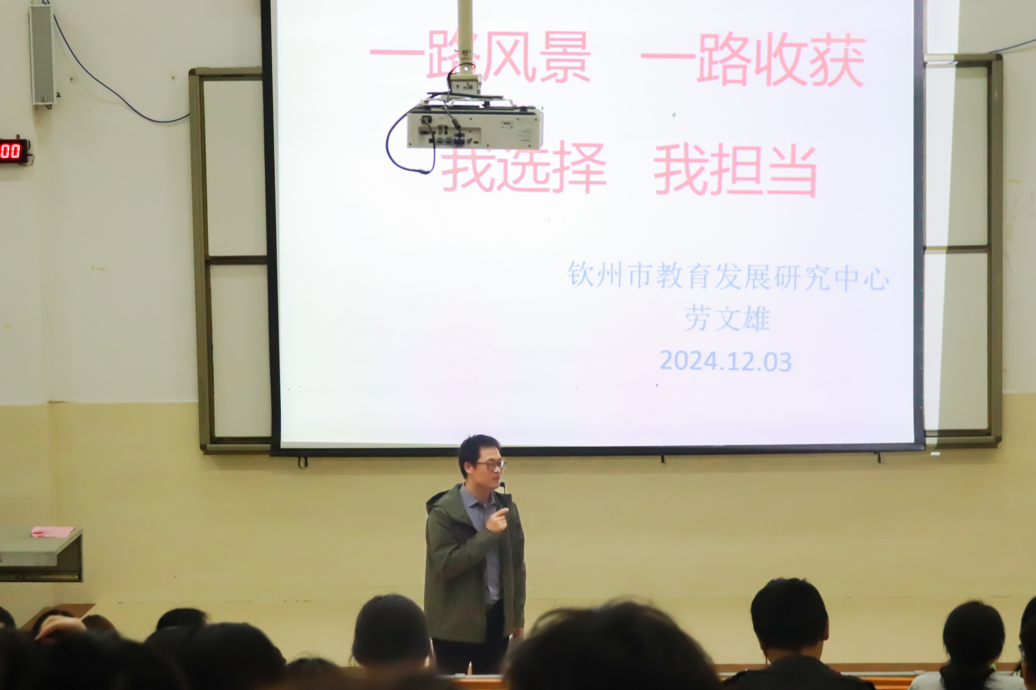 12月3日晚,我院邀请钦州市钦州市地理教研员劳文雄对地理科学专业学生开展面试培训及就业指导专题讲座。学院副院长王华宇主持。