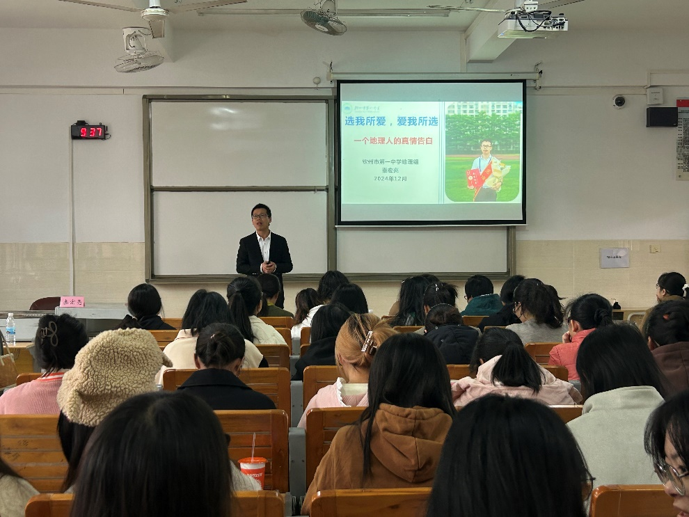 本次讲座以“选我所爱,爱我所选——一个地理人的真情告白”为主题,讲座案例丰富,内容详实,涵盖了地理教育新理念、教学方法创新、教育研习经验分享等多个方面。