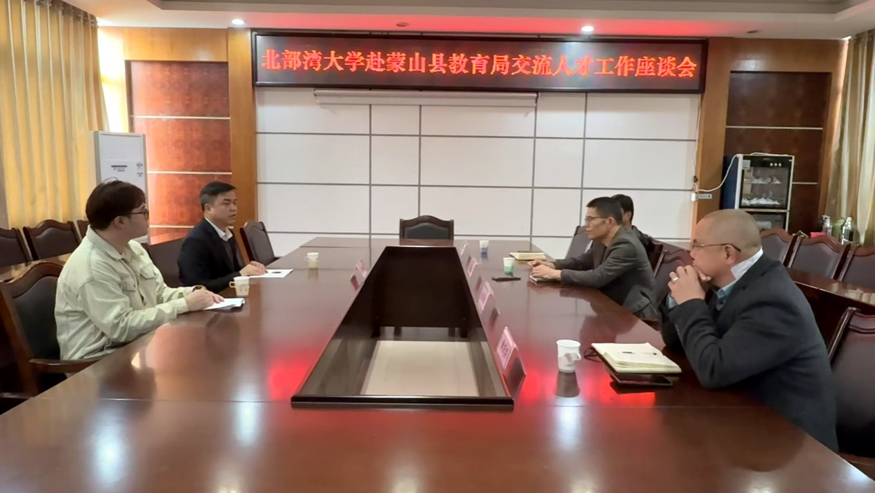 2025年1月24日,为进一步加强校地合作交流,我院党委副书记、院长黎树式与梧州籍毕业生代表地理科学211班学生覃宏机赴梧州市蒙山县教育局进行交流。中共蒙山县委教育工委书记、县教育局党组书记罗明、中共蒙山县委教育工委副书记、县教育局党组成员、副局长谢祥等领导接待了黎树式院长一行。