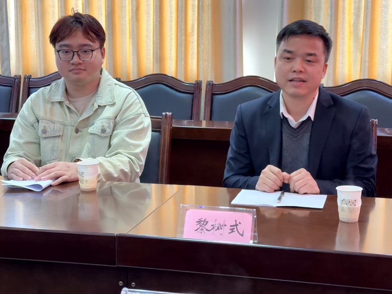 座谈会上,黎树式院长介绍北部湾大学的基本情况,重点推荐了学院2025届毕业生,希望蒙山县教育局给予他们更多的就业机会和实践平台;覃宏机同学作为2025届学生代表,向与会人员分享了自己在校期间的学习经历,表达了对家乡的深厚感情和为家乡发展贡献力量的强烈愿望。