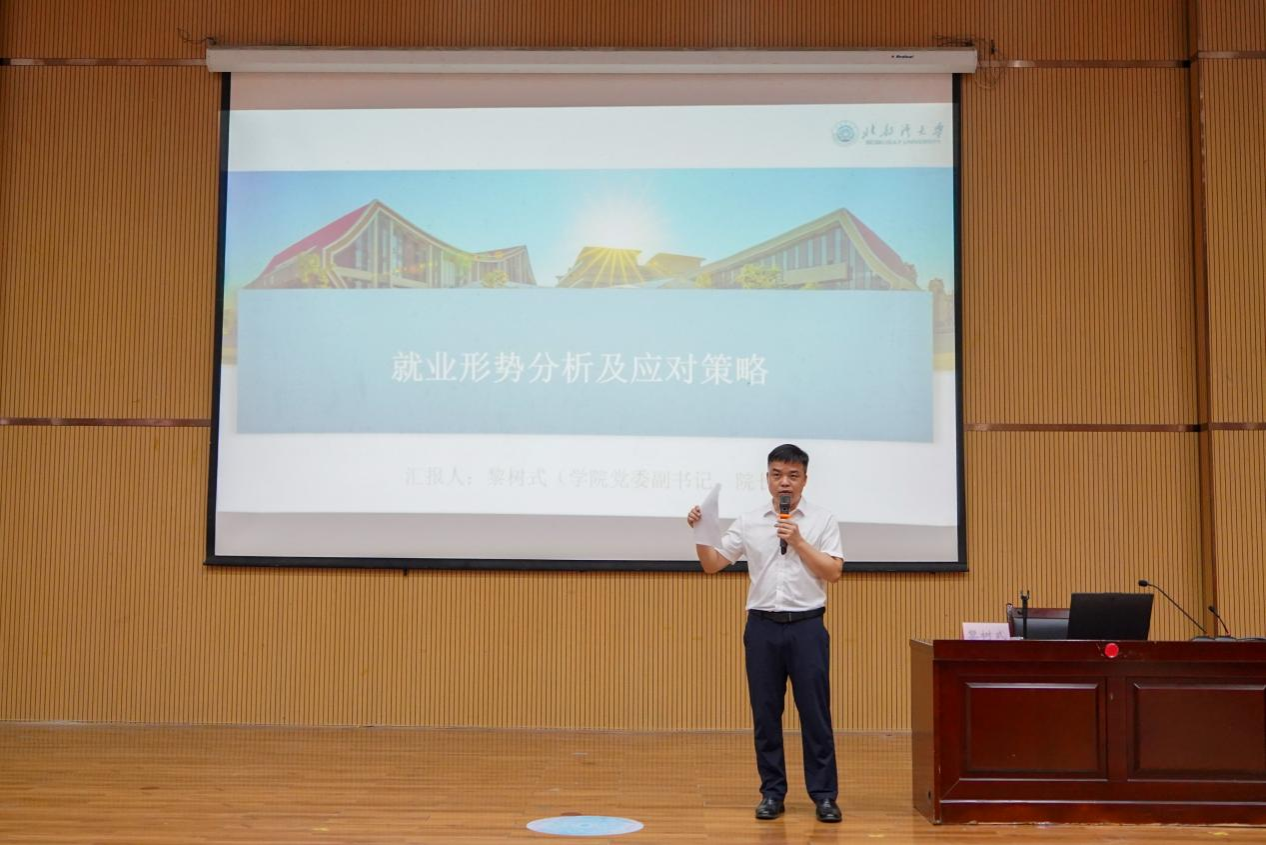4月30日上午,学院于4-101报告厅开展2025届毕业生求职辅导报告会。学院领导班子、2025届全体毕业生、毕业班班主任以及辅导员参会,会议由学院党委书记粟建勇主持。