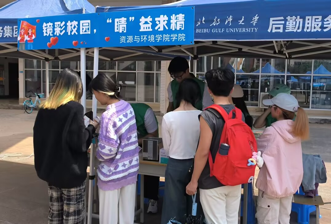 为弘扬雷锋精神,推动新时代文明实践活动走深走实,3月22至3月23日,北部湾大学2025年“青春志愿行,实干建新功”学雷锋志愿服务活动在大学生活动中心广场隆重举行。我院积极响应学校号召,特别推出“镜彩校园,‘睛’益求精”志愿服务项目,为全校师生提供免费眼镜清洗、镜架调整及专业视力检测服务,赢得广泛赞誉。